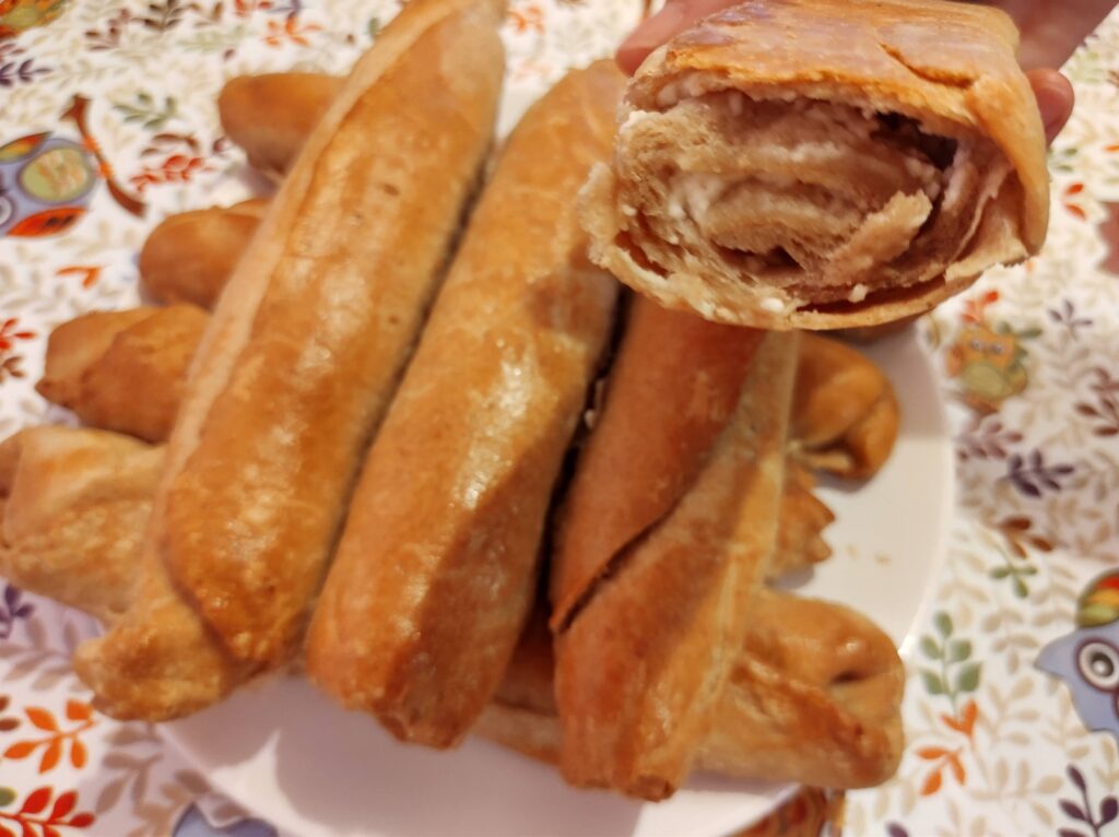 Рогчета със сирене от пълнозърнесто и типово брашно и свинска мас