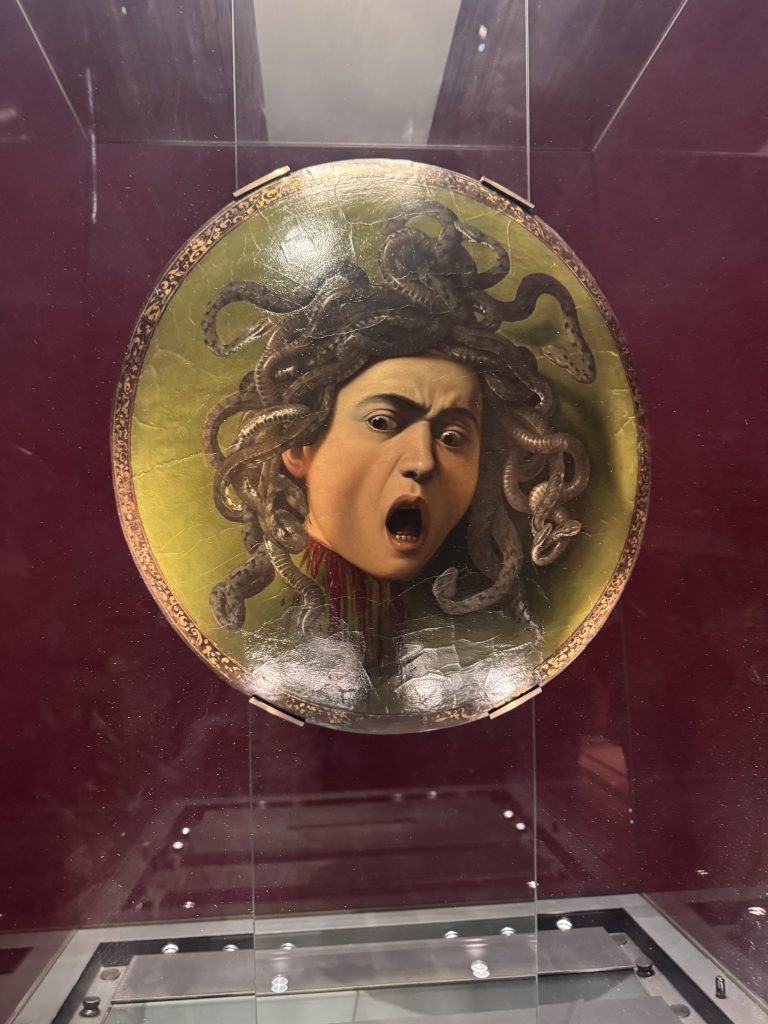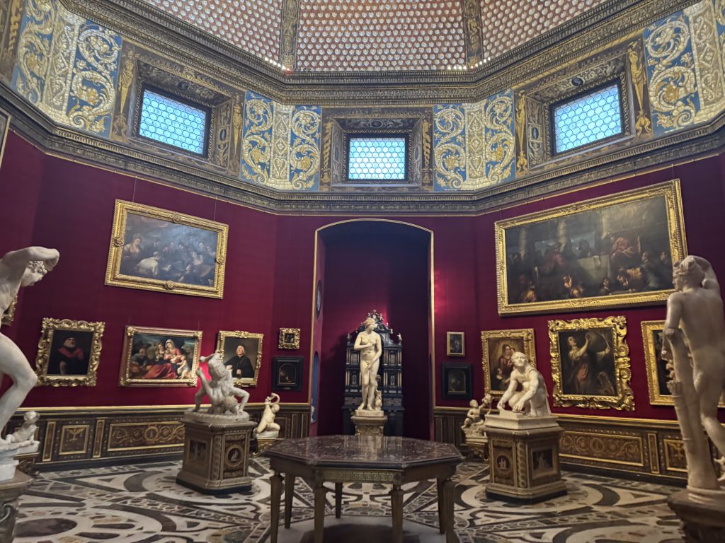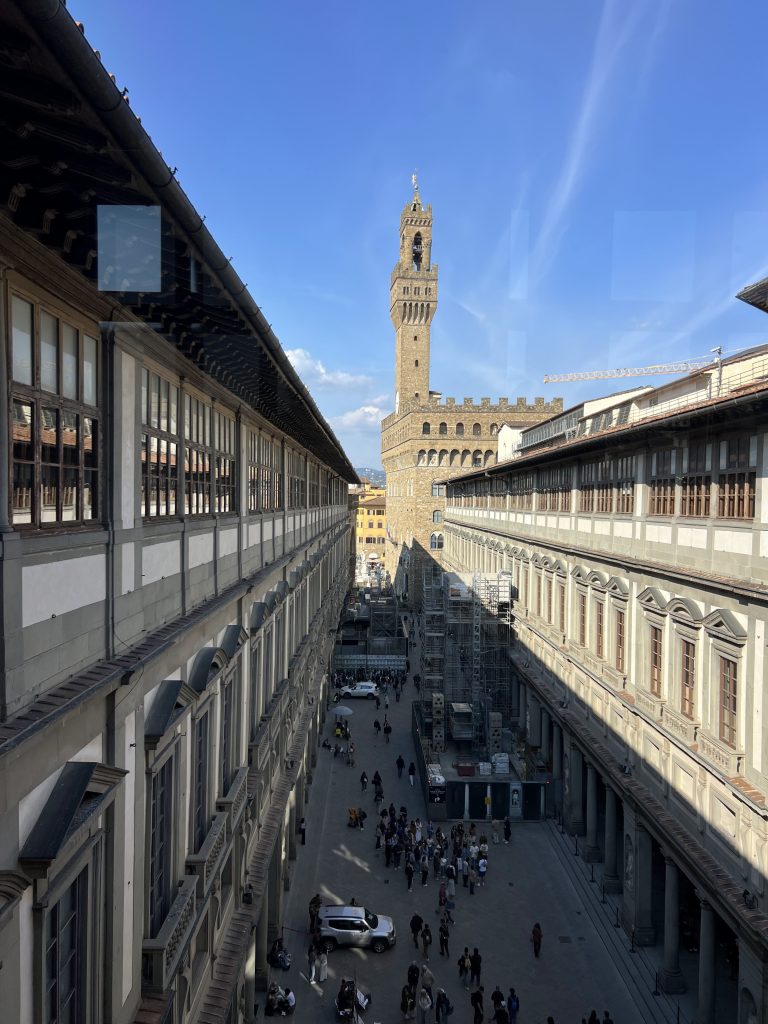Един от най-очакваните моменти беше посещението на Галерия Уфици с частен гид. Името „Uffizi“ идва от „офиси“ – сградата първоначално е служела като административен център на могъщата фамилия Медичи. Днес е един от най-важните музеи в света. Сред най-впечатляващите произведения бяха творби на Леонардо да Винчи, Ботичели и Караваджо. Особено силно впечатление оставят „Раждането на Венера“ и „Примавера“ на Ботичели, както и драматичният реализъм на Караваджо. Турът беше изключително интересен, но и доста интензивен – три часа сред тълпи от хора.