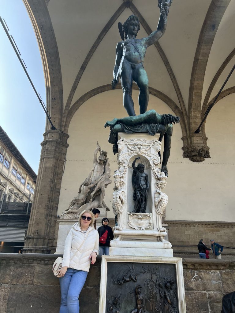 Следващият ден беше по-спокоен за мен – разходки из малките улички, докато съпругът ми беше на работни срещи. Успях да се насладя на някои от най-емблематичните ѝ забележителности – катедралата във Флоренция или т.н. Дуомо, нейния впечатляващ купол, проектиран от Филипо Брунелески, както и до Понте Векио – най-стария мост над река Арно, известен с малките си бижутерийни магазинчета. Не пропуснах и Piazza della Signoria – оживено място, което съчетава история, изкуство и архитектура на открито, с внушителния Palazzo Vecchio. В близост се намира и копие на статуята на Давид. Това ми даде възможност да усетя града по свой собствен начин – без бързане, с чаша джелато в ръка и с усещането, че Флоренция се разкрива най-красиво именно когато ѝ отделиш време.
